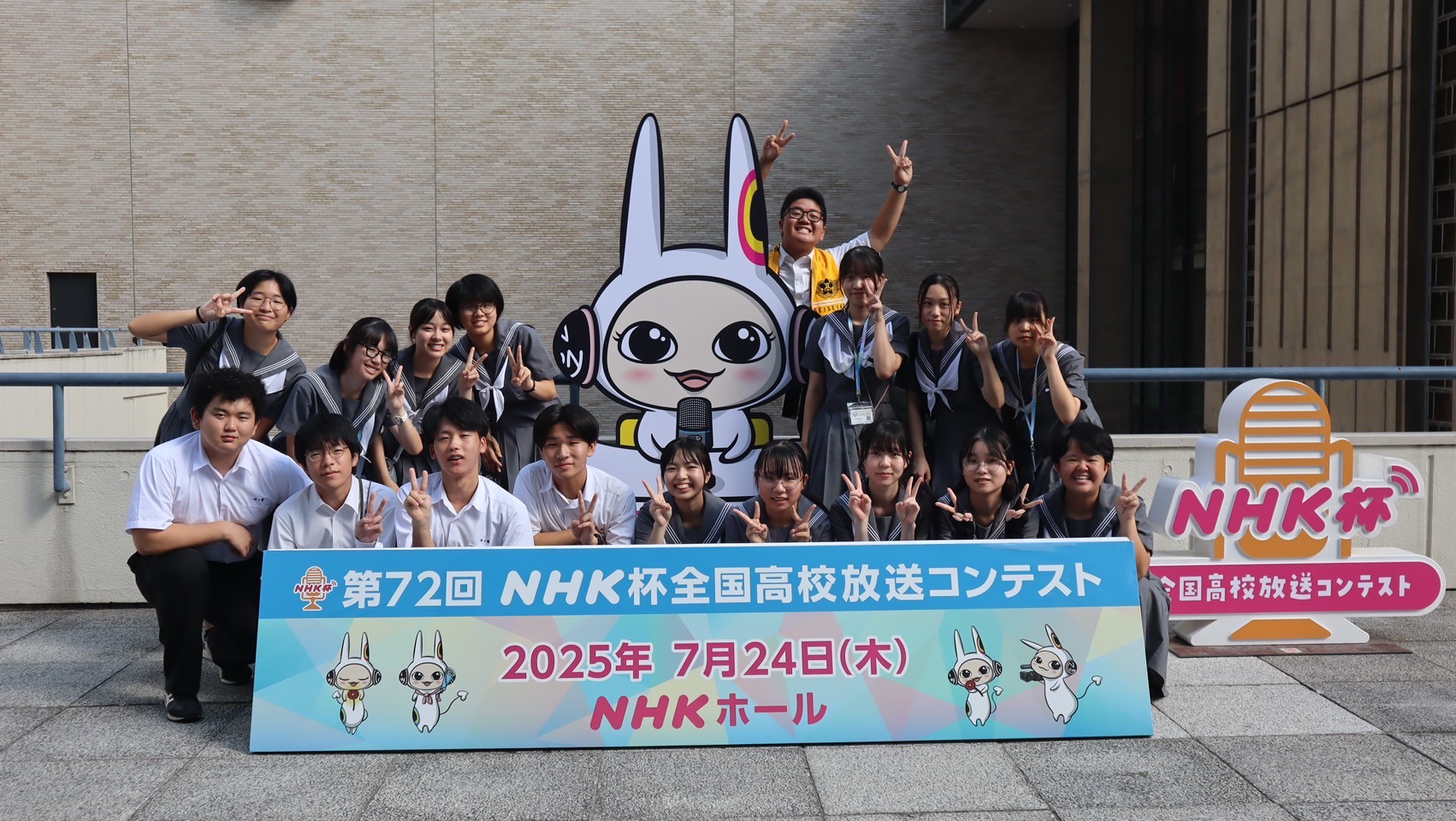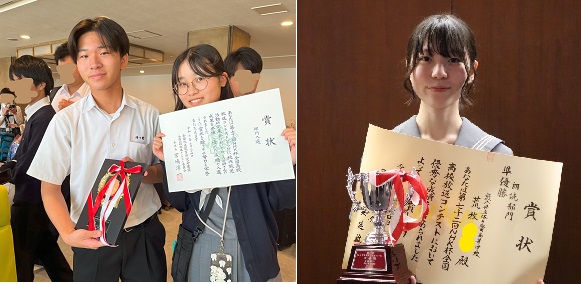 放送部の17名が、アナウンス、朗読、ラジオドキュメント、テレビドキュメント、創作ラジオドラマ、創作テレビドラマの6つの部門に出場しました。7月22日に国立オリンピック記念青少年総合センターで各部門の準々決勝が行われ、テレビドキュメント部門で本校の歴史研究部の活動を追った番組「忘却に抗う者たち」が、朗読部門で宇佐見りんの小説「推し燃ゆ」を朗読した3年生の荒牧さんが翌日の準決勝に進みました。(上位40作品および上位60人)審査の結果、テレビドキュメント部門で本校の作品が入選(全国12位~20位相当)、朗読部門で荒牧さんが決勝に進出しました(上位10人)。24日に行われた朗読部門の決勝でNHKホールのステージに立った荒牧さんは素晴らしい発表を行い、見事準優勝に輝きました。朗読部門での本校生の入賞は初めてのことです。