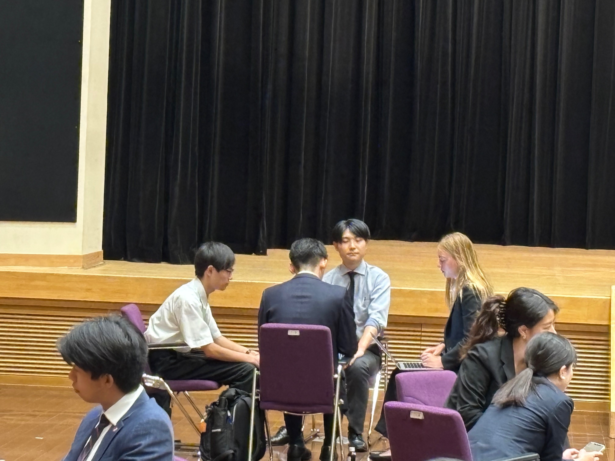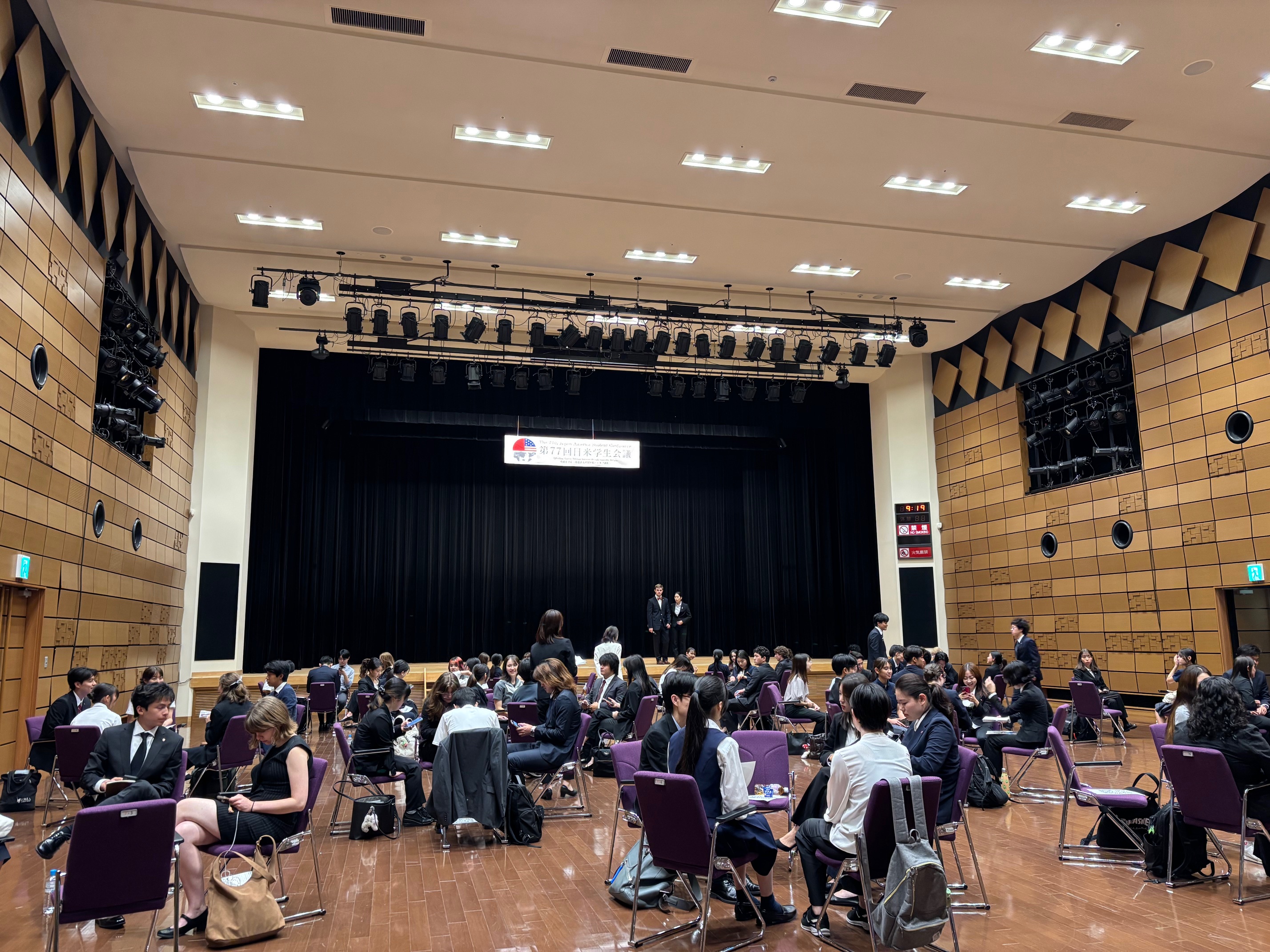 8月13日(水)に、熊本森都心プラザホールと肥後銀行本店ホールで行われた日米学生会議に、本黌の生徒3名が参加しました。アメリカと日本の大学生と一緒に、「災害と復興」・「地域おこし」・「半導体産業と地域振興」の3つのテーマについて英語で討議を深め、午後には高校生代表としてパネルディスカッションに登壇しました。