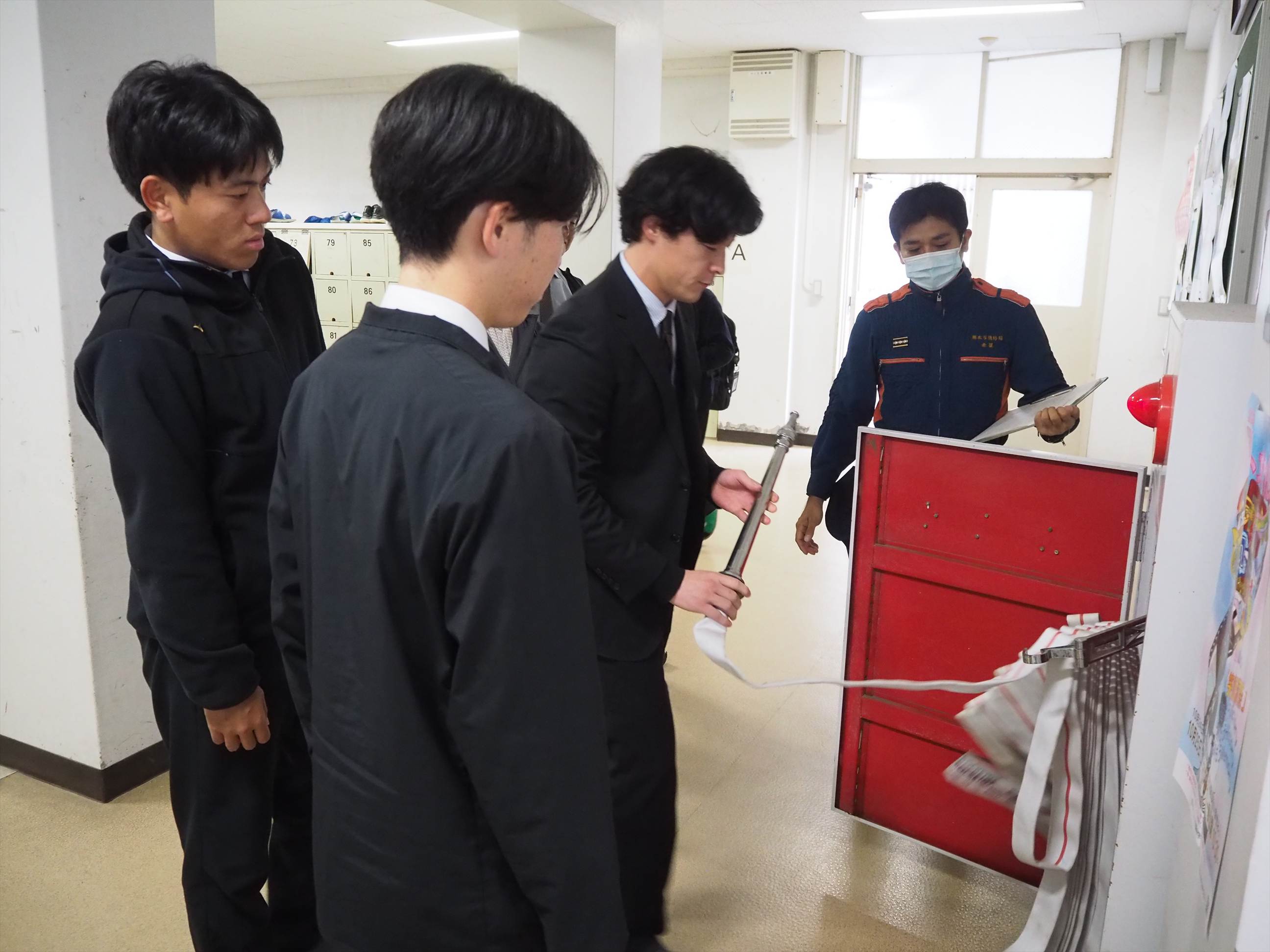 11月13日(木)、7限終了時から防災避難訓練が実施された。未明からの 降雨によりグラウンドが使用不可となり、急遽シェイクアウト訓練に変更とな った。緊急地震速報が発せられ、全生徒および職員が丈夫な物(机下)に身を 隠し、揺れがおさまるのを待った。 その後、校長および消防署の方から防災時に注意する事項などの説明があっ た。毎年発生する豪雨災害、周期的に発生する大地震などを経験している生徒 達は、真剣な眼差しで訓練に取り組んでいた。