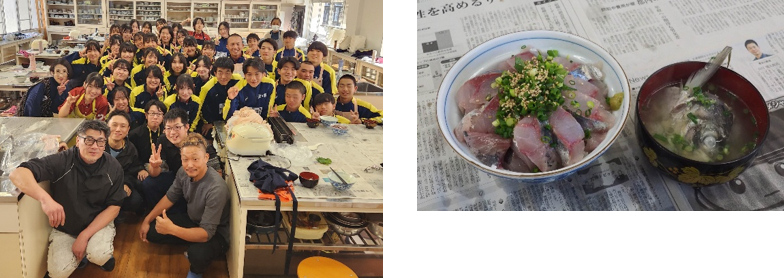 初めて魚を捌く生徒が多かったのですが、自分で作った鯵丼は格別に美味しかったようです。森さんは、「肉料理だけでなく、魚料理にも関心をもってどんどん食べてほしい」「魚を1尾で買うことはなくても、切り身の魚を買って料理ができる人になってほしい。これを機に魚料理を気軽に楽しんでもらえれば嬉しい。」と話されていました。