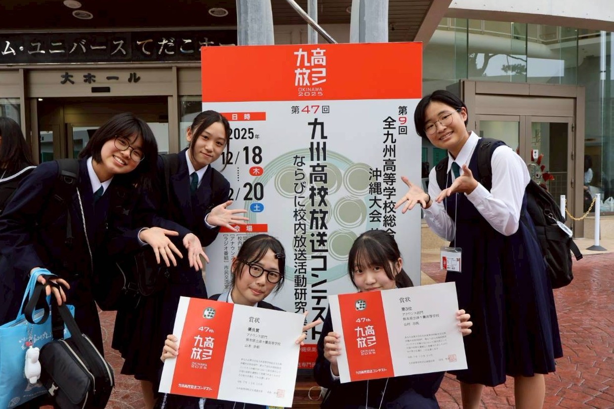 審査の結果、アナウンス部門で山村さんが3位に入賞しました。山本さんは優良賞でした。本校生のアナウンス部門での入賞は初めてのことです。山村さんは、第50回全国高等学校総合文化祭(あきた総文祭2026)放送部門(アナウンス)に推薦されました。