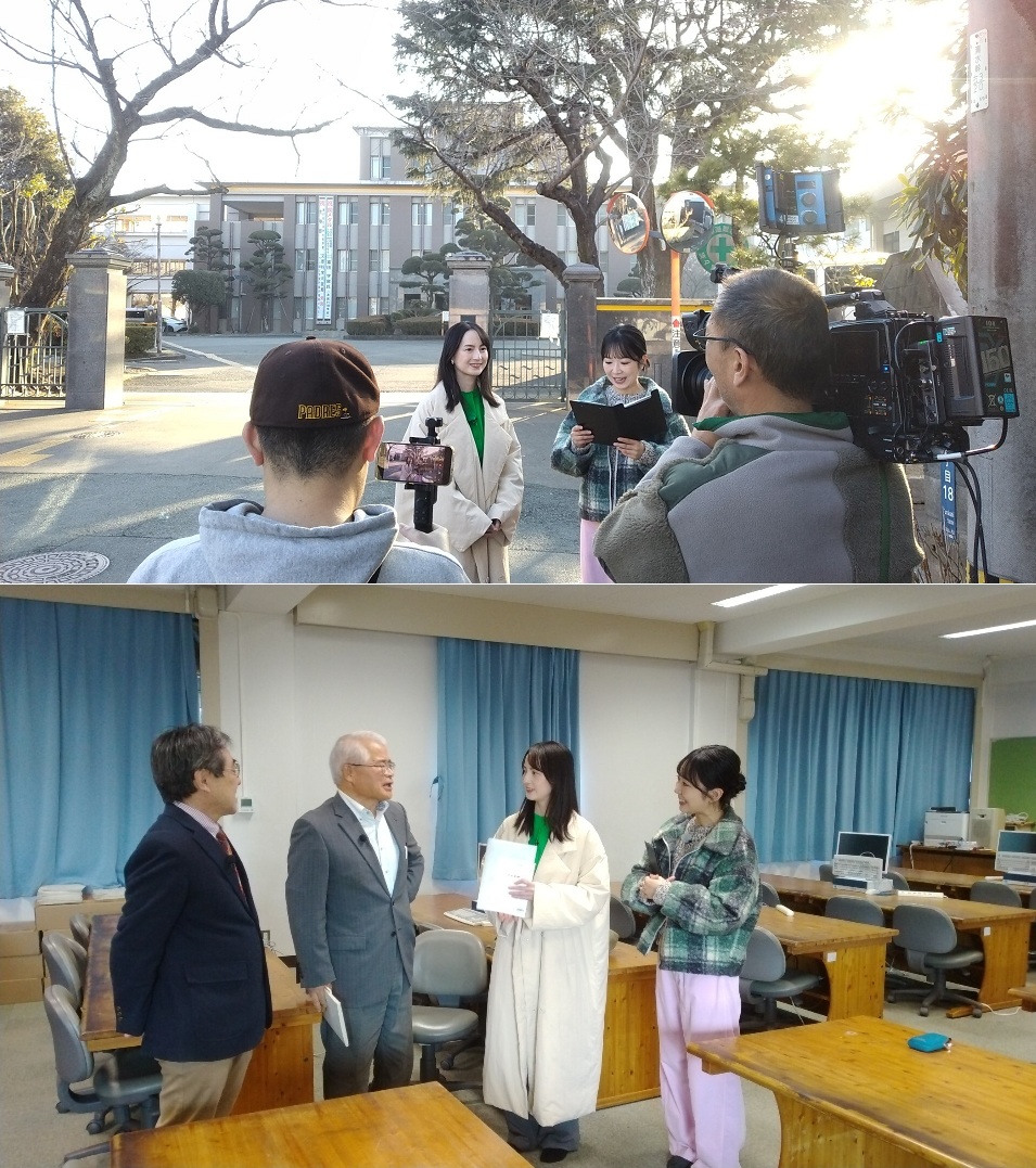 2月21日(土)朝、TBSアナウンサーで「報道特集」メインキャスターを務めていらっしゃる本黌H24卒の山本恵里伽さんがRKK新番組「おかえり熊本」の収録で本黌に帰って来られました。当番組のナビゲーターであるフリーアナウンサーの糸永有希さんと共に収録を行いました。