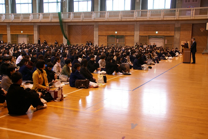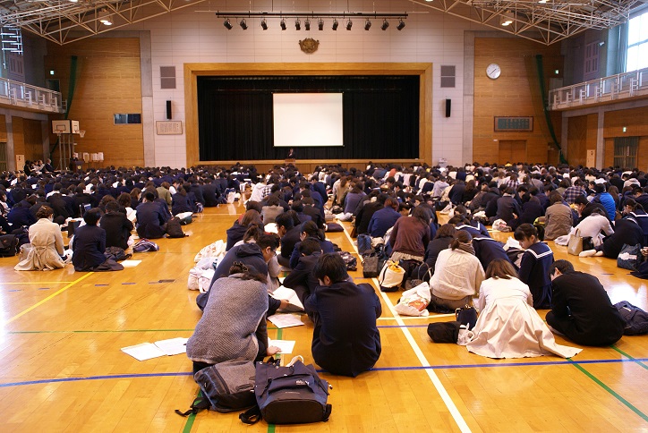 桜のつぼみもちらほらとほころび始めた3月16日(金)、体育館において合格者説明会が開催されました。入学式に向けた準備や諸注意を熱心に聞きながら、どんな未来に思いを馳せているのでしょうか。春を待ちわびる桜のつぼみのように、身を固くしつつ、どこか誇らしげな合格者のみなさんでした。