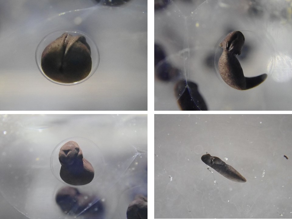 今年も本黌の裏山では、ニホンアカガエルが続々と卵を産んでいます。授業の一環として、卵塊の一部を拝借して黌内で育てています。小さな卵がどんどん卵割をはじめ、約3週間でおたまじゃくしに成長してきました。毎日見ていると愛着もわき、登下校時に必ず卵やおたまじゃくしを観察しにきて話しかけている生徒もいます。新たな命が誕生していく過程を見られることはとても貴重な経験です。様々な生き物の神秘を感じて、自分の命も大切にしてほしいです。