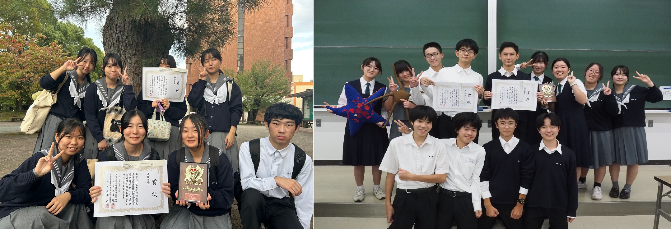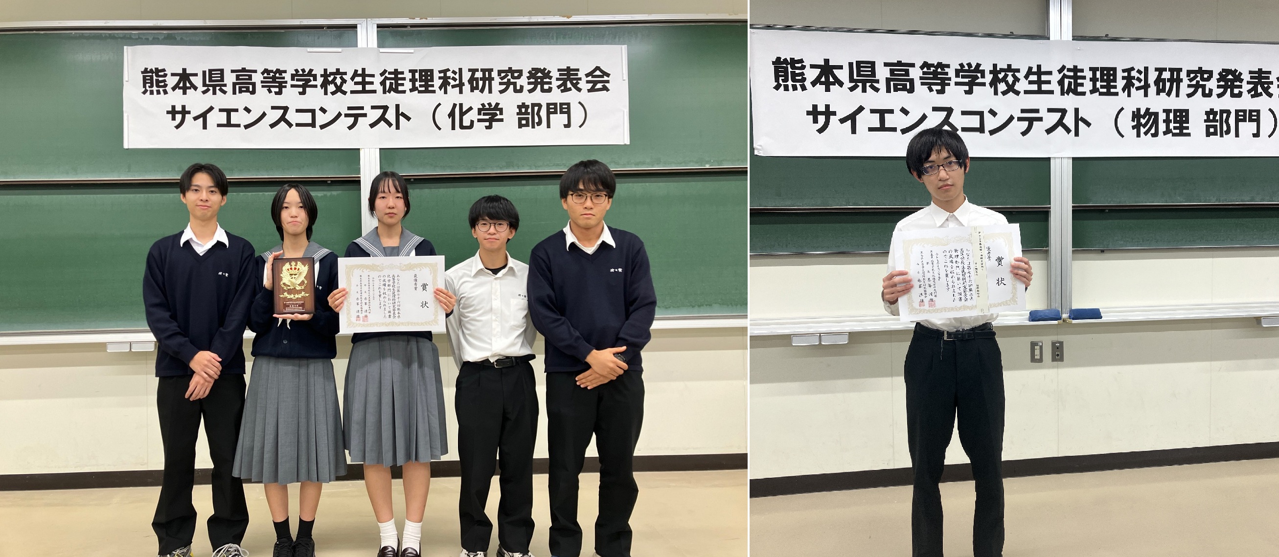 2025年(令和7年)10月25日、熊本学園大学を会場に開催された第76回熊本県高等学校生徒理科研究発表会に化学部・生物部・地学部・物理同好会が参加し、4つの部門で計7つの発表を行い、3作品が全国総合文化祭への出場を決めました。