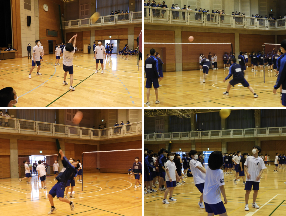 当初はハンドボール、バレーボールの予定でしたが、雨天のため急遽、体育館でバレーボールのみを行いました。