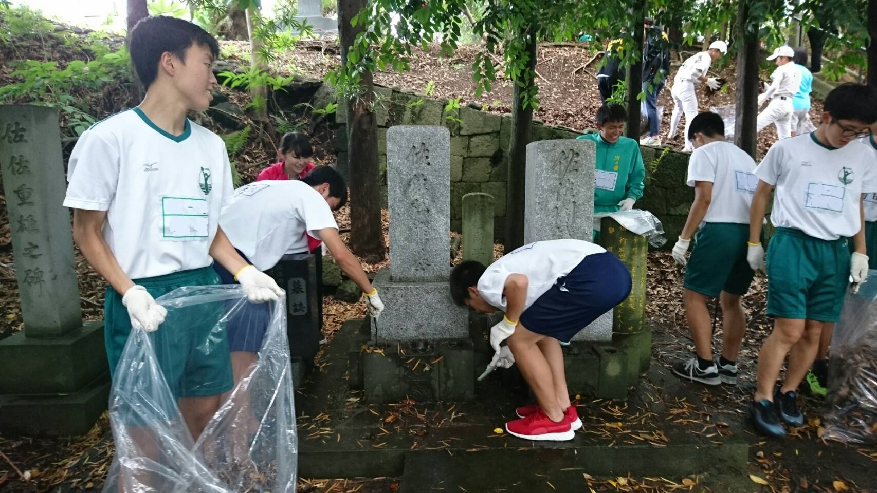 期末考査終了後、100名ほどの有志とともに、歴代4名の黌長先生が眠る墓所の掃除を行いました。