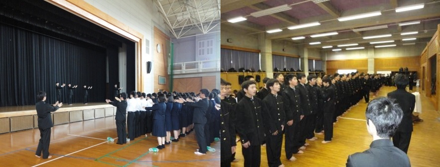 放課後、結団式が行われました。団ごとに分かれて、まずリーダーの指揮のもとで声出し・黌歌斉唱・応援練習などを行って結束を固めた後、団長・リーダー等の紹介・決意表明がありました。