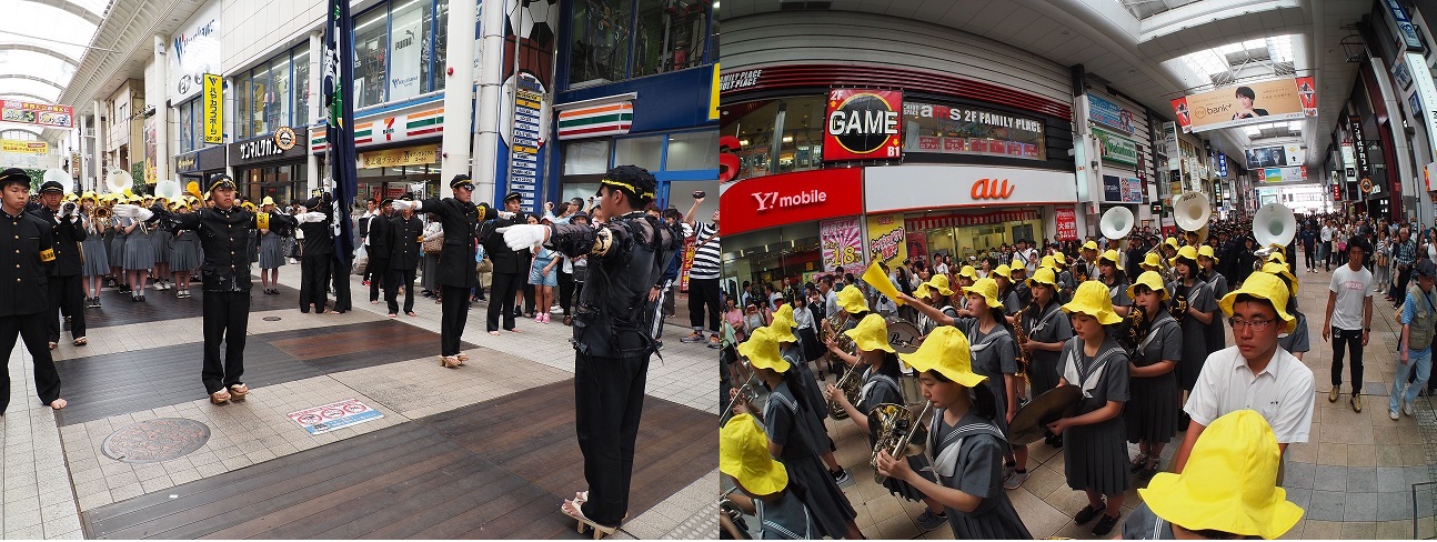11日(土)の午後、第135回恩賜記念大運動会の開催を宣伝するパレードが行われました。真夏のような蒸し暑さの中、1年生と應援同好会、吹奏楽部など約500名が校歌を高らかに歌い上げながら、上通りから辛島公園までを練り歩きました。各商店街や歩行者の皆様のご理解とご協力を賜りまして、無事に終了することができました。心より御礼申し上げます。