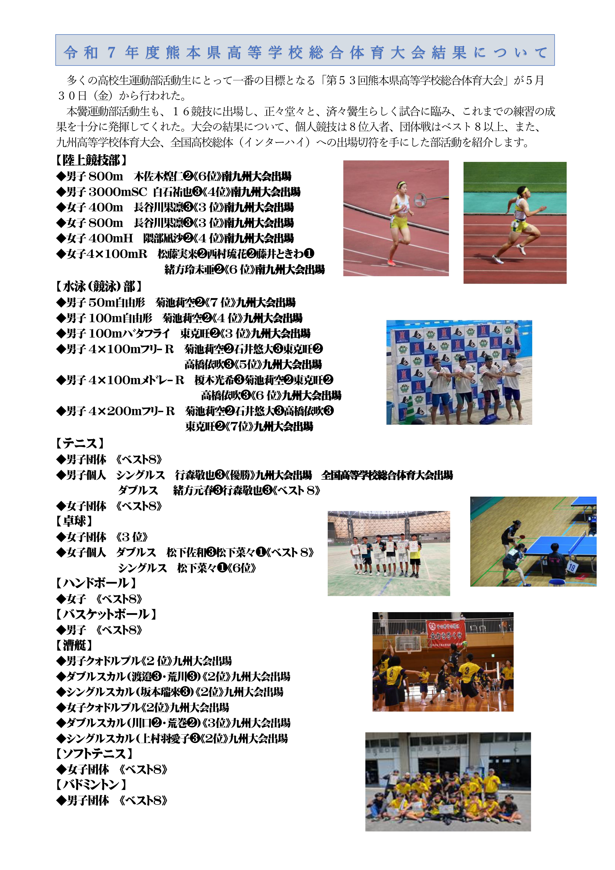 2025/07/08 令和7年度熊本県高等学校総合体育大会結果について