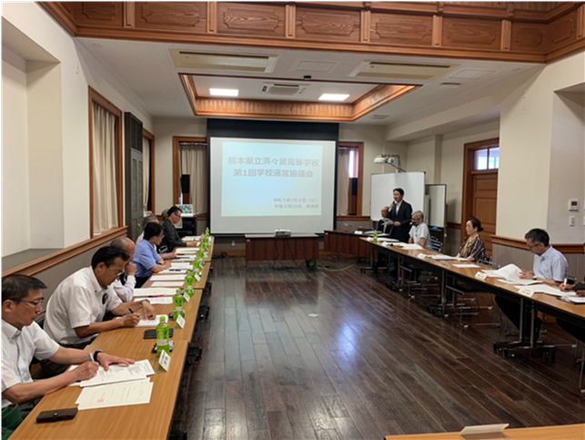 7月8日(火)13:35~15:50に、令和7年度第1回学校運営協議会が開催されました。本黌の運営協議会は、同心会長、自治会長、近隣企業代表、近隣学校代表、地域行政・警察署・消防署等の代表の皆様により構成されており、当日は授業を参観した後に、学校運営について協議を行いました。委員の皆様から多くの御意見をいただき、大変有意義な会となりました。いただいた御意見は、今後の教育活動に反映していきたいと考えています。