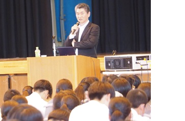 6月17日(火)7限目の総合的な探究の時間に、1,2学年は上西川原淳さんの講話を聞きました。