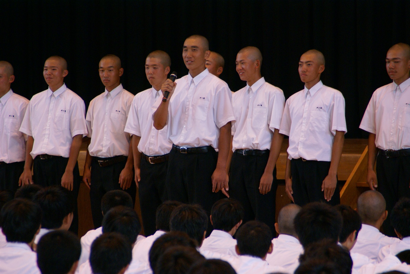 7月1日に開会式を迎えた高校野球熊本大会。初戦を控えた済々黌球児の推戴式を行いました。前田副黌長から、「結果は後からついてくる。試合では目の前のことに集中し、応援を追い風にして頑張ってほしい。」と激励のことばがありました。また、生徒を代表して総務委員長の上田君は、「全校生徒の想いを背負って勝ち進み、甲子園に連れて行ってほしい。」と述べました。激励を受けて野球部主将の古閑君は、「多くの時間を野球に捧げてきた。全6試合を全力プレー全員野球で臨みたい。」と力強く決意を表明しました。最後に応援団による必勝の拍手とエールを受け、気合いの入った野球部の今後の活躍に期待がかかります。初戦は天草工業高校と、7月4日14時30分から藤崎台球場にて行われます。みなさん、応援よろしくお願いします。