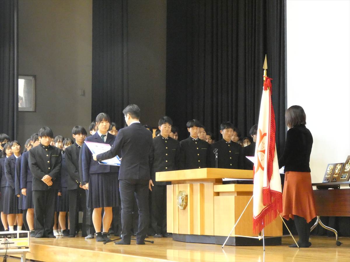 12月19日に本黌体育館にて、2学期表彰式及び終業式が行われました。表彰式では、2学期に諸活動で顕著な成績を残した各団体の代表生徒(16団体,のべ66名)がステージに上がり、坂本黌長より表彰を受けました。