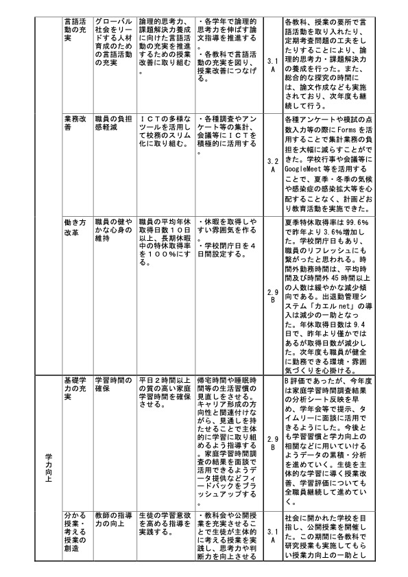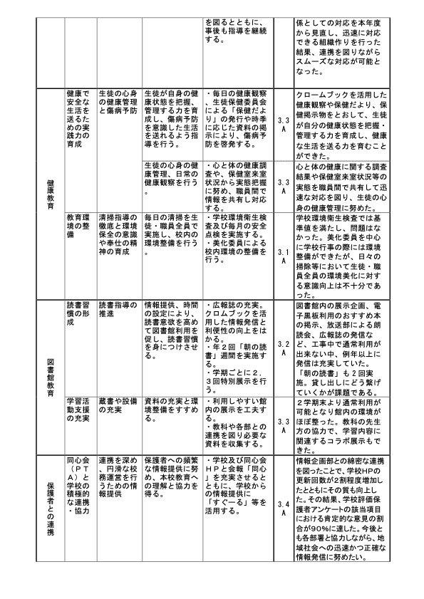 令和6年度(2024年度)学校評価表  詳細PDF