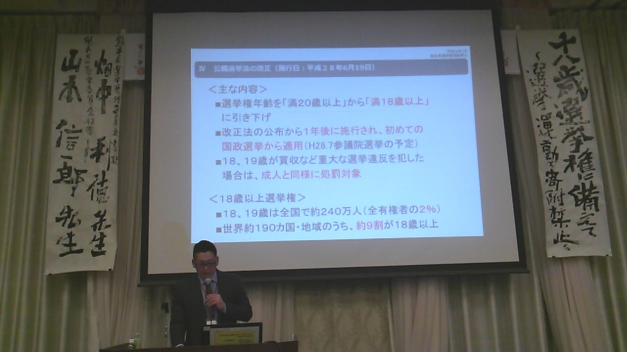 2.講演会:演題『18歳選挙権に備えて~選挙運動と寄附禁止~』