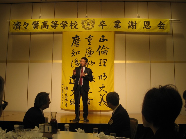 夜には恒例の謝恩会が開かれ、会場のホテルキャッスルには、翌日が平日にもかかわらず、200名を超える保護者が集い、川上黌長をはじめとする先生方や学校との別れを惜しみました。