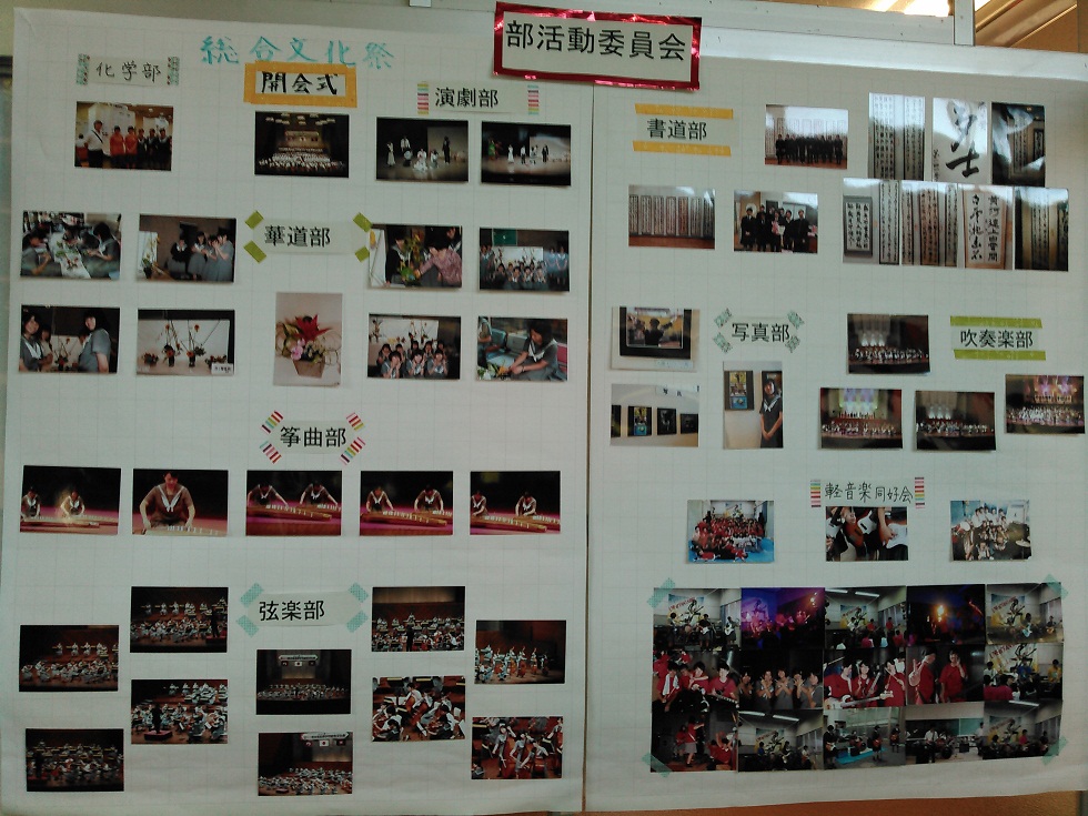 平成27年9月11日、明日の文化祭で「同心会の部屋」を催すにあたり、生徒達の部活動の様子を写した写真を掲示するための準備を行いました。