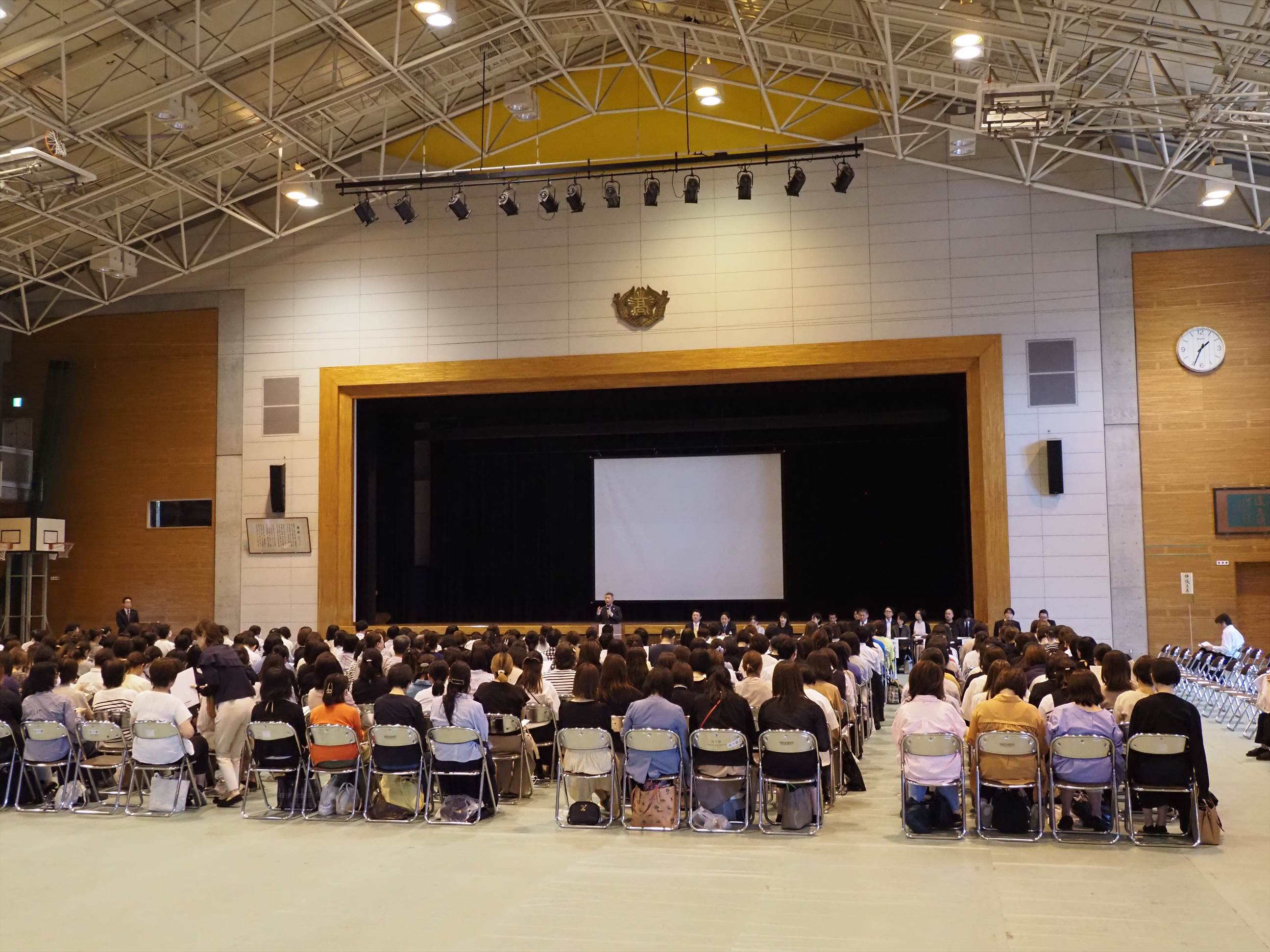 多数の保護者の皆様が参加され、同心会総会が行われました。前年度の3学年委員長である堤議長の司会のもと、関係各位の御協力のおかげで円滑に議事が進行され、すべての議案に御承認をいただきました。午前中は保護者の方々に授業の様子を御見学いただき、総会前には代表生徒による探究活動の成果発表も行われました。また各クラスでの学級懇談等も行われ、充実した一日となりました。会員の皆様方、今後とも本黌の同心会活動に御理解と御協力を賜りますよう、何卒宜しくお願い申し上げます。なお、令和6年度同心会会長に松尾新会長が就任されました。